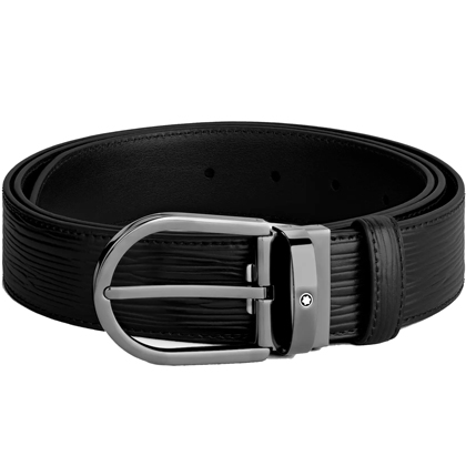 Черный кожаный ремень с подковообразной пряжкой 35мм от магазина премиальных ручек Premium Pens в Реутове.